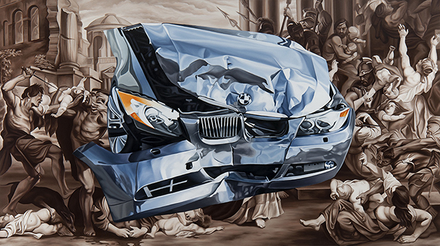 У живописца Джейка Шарбаха интерес к классике проявился иначе. Он восхищается искусством прошлого, ведь его основная понятийная категория — красота. Чего не скажешь об актуальном искусстве. Классика составляет контраст с современной культурой, которая для художника уродлива и ужасна. Впрочем, зритель может сравнить сам: Джейк Шарбах сталкивает фрагменты известных произведений искусства со сценами из современной жизни. Так разбитый BMW оказался на знаменитом полотне Рубенса «Избиение младенцев», а Венера Джорджоне заснула на автомобильных шинах.
