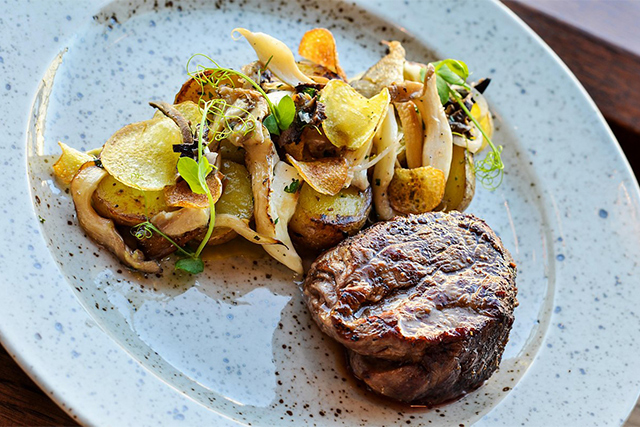 В Петербурге, в самом центре Невского проспекта, решили сломать этот стереотип и открыли заведение, способное в режиме 24/7 накормить усталого путешественника и проголодавшегося горожанина понятным и сытным меню. «Едва только взойдешь на Невский проспект, как уже пахнет одним гуляньем», — писал Гоголь 180 лет назад. За это время мало что концептуально изменилось — можете устроиться у витрины или на террасе кафе Avenue 55 и сверить увиденное с классическим текстом. Во внутреннем же интерьере смешались современная урбанистика, старинная патина и герои прекрасного города в огромном коллаже. Ветер эклектики задувает с Невского на кухню, и русские идеи соединяются в тарелках с изящными приемами актуальной в мире кулинарии. Салат с сочащимся домашним ростбифом сдобрен с кавказской щедростью зернами граната и кинзой (370 руб.), бабушкины среднерусские котлеты из щуки отдаются с типично французским гратеном (370 руб.), булгур к утиной грудке приготовлен на манер сливочного ризотто (550 руб.), а маринованные грузди, копченая щука и кабачковая икра завоевали свое место на брускеттах (160—270 руб.). Бефстроганов, оливье и сырники — для патриотов; вок, пицца и бургеры — для космополитов. Невский примиряет любые конфессии и жанры.