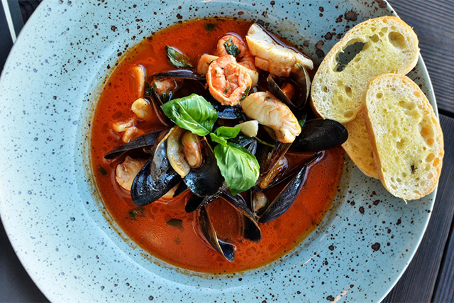 Вот новые смельчаки открыли кафе с брутальным трубно-контейнерным интерьером и взялись резать, растягивать и готовить пасту прямо в зале. В восторг приводит грубоватое тесто и будто бы небрежная нарезка — как в закоулках римского Трастевере, в тратториях «для своих». Управляют заведением повара, поработавшие у маститых «русских» итальянцев, прививших ученикам вкус к аутентичным тальятелле и ригатони. Соусы к ним замешивают без фантазийных изысков — карбонара (280 руб.), болоньезе (270 руб.), томаты и моцарелла (295 руб.), фрутти ди маре (420 руб.), равиоли с рикоттой (265 руб.) и лазанья (250 руб.) — все по классическим рецептам, italiano vero. Так же достоверна и пицца на тонком хрустком тесте — ее 5 видов (200—420 руб.). Для «итальянскости» происходящему не хватает галдежа и эмоциональной скороговорки, но зато в окнах — архитектура в традициях итальянского неоклассицизма.