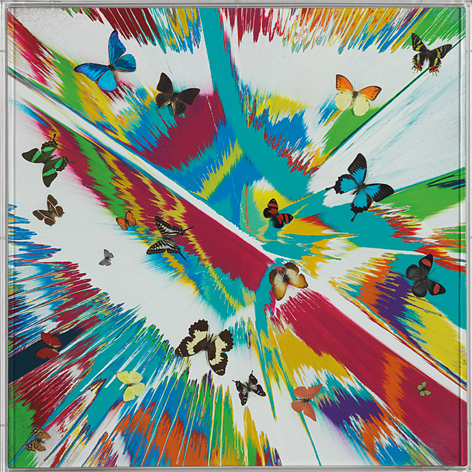 Дэмиен Херст (род. 1965) "Прекрасная весна на фоне арктического полотна (с бабочками)"; 91,4 x 91,4 см (без рамы); $600 000