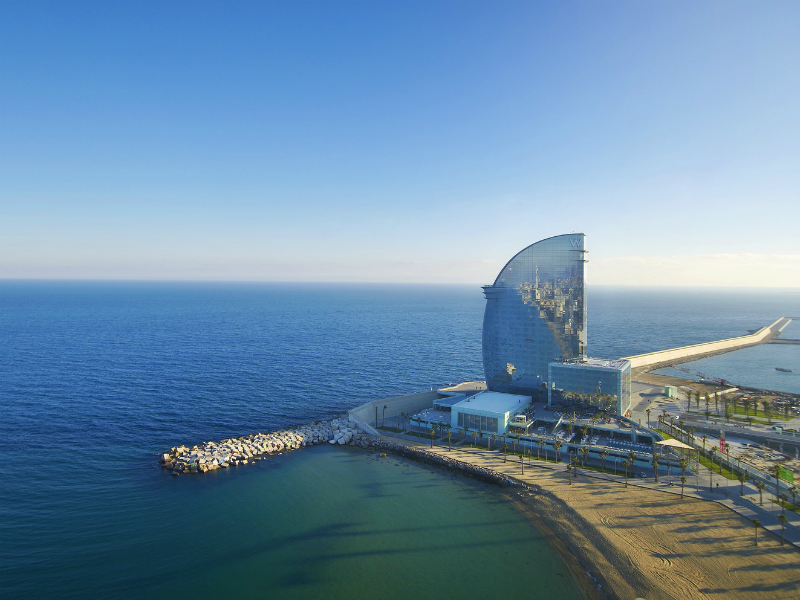 Из окон каждого номера W Hotel Barcelona открывается вид на море, которое сливается с линией горизонта, а также на сам город. Постояльцев отеля ждет собственный песчаный пляж, который местные жители называют не иначе как частной Копакабаной. Гостей готовы принять 473 номера, в том числе и 67 люксов, два номера категории WOW-Suite и один Extreme WOW-Suite. Провести свободное время можно в спа-центре Bliss, фитнес-центре SWEAT, авторском ресторане, где мастерство кулинарного дела демонстрирует обладатель звезды "Мишлен" — каталонский шеф-повар Карлес Абеллан, баре на крыше Eclipse или ресторане Wave.