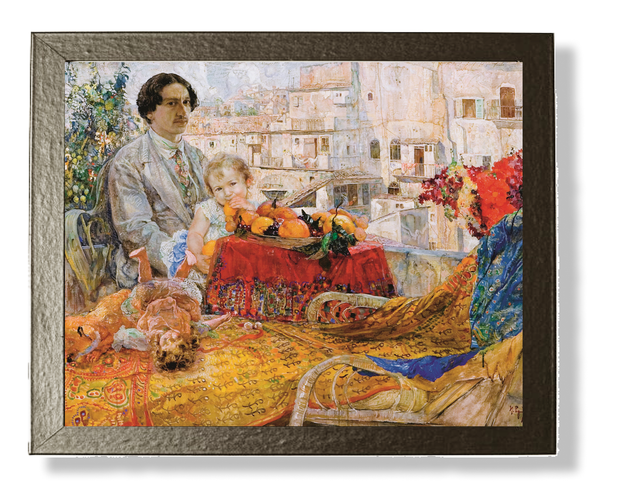 В эту поездку художник в основном жил и работал в Италии, в том числе на Капри в гостях у Максима Горького. За картину «Сказка» (1911), обобщающую впечатления автора о стране, Бродский получил премию на конкурсе поощрения художеств. Эти деньги позволили ему самостоятельно посетить Апеннинский полуостров еще раз. И именно во время этого путешествия он создал автопортрет с дочерью Лидией, родившейся в браке с первой женой Любовью Марковной (в девичестве Гофман).