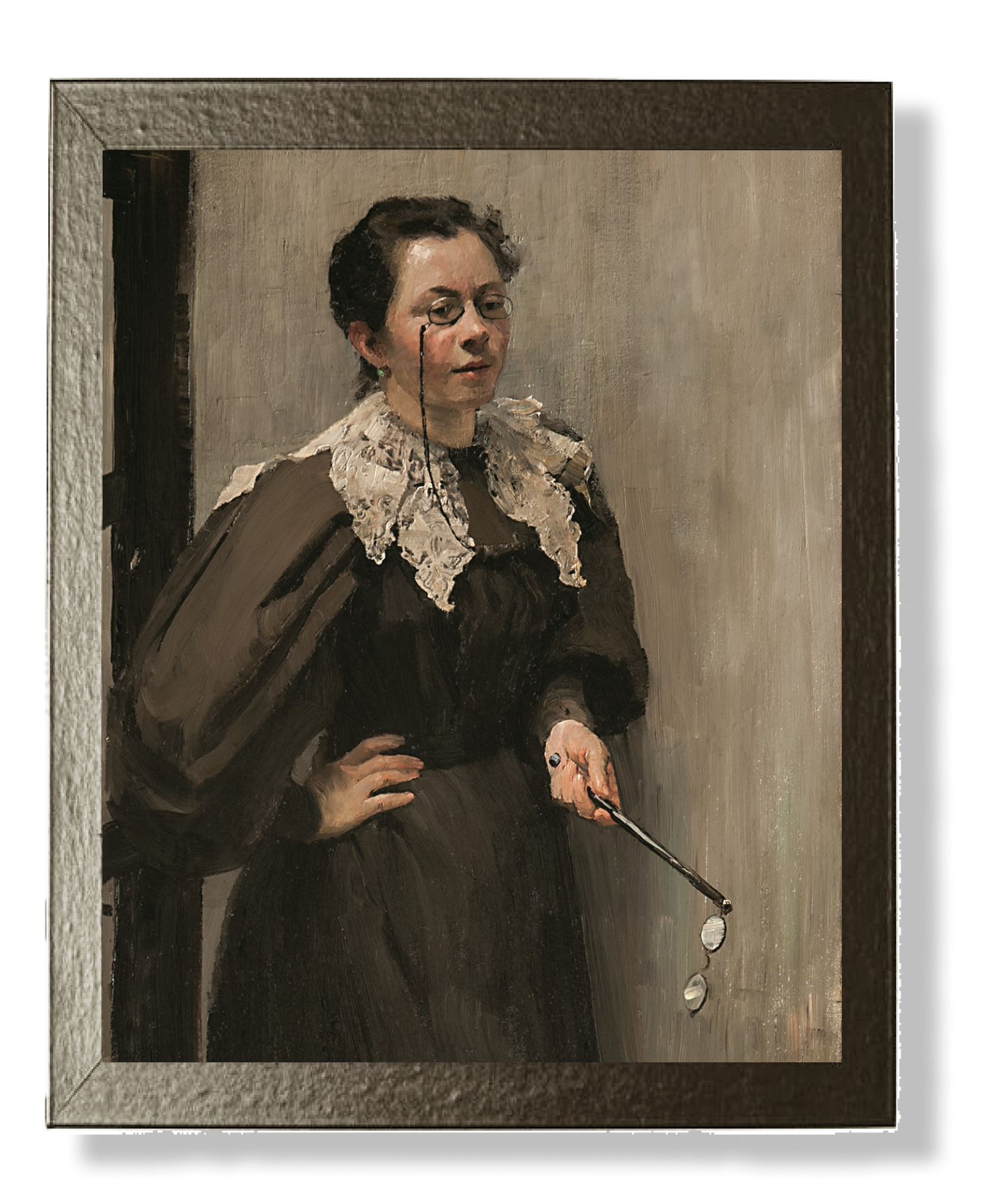 Остроумовой-Лебедевой редко нравилось, как ее изображали коллеги, и о работе Малявина позже вспоминала: «В феврале 1896 года он писал мой портрет. Мама дала ему тридцать рублей на холст и краски. Размер очень большой. Я во весь рост стою в классе академии. Портрет вышел неинтересный. Я не люблю его. Он груб, скучен и совсем не передает меня. Он не похож ни формально, ни внутренне. Краски лица не те, рисунок тоже слаб. Конечно, чувствуется и сила, и мощь, но все приблизительно, не убеждает».