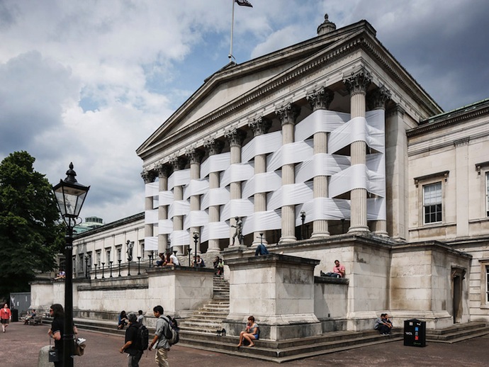 Университетский колледж Лондона был основан в 1826 году, здание построил архитектор Уильям Уилкинс, видный представитель классицизма в английской архитектуре. Традиционный облик одного из лучших университетов мира на две недели нарушил Николас Фельдмейер. Его новая инсталляция "Без названия (Плетеный портик)" останется на колоннах главного здания UCL до 15 июня.