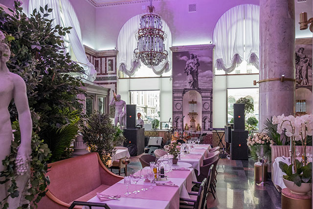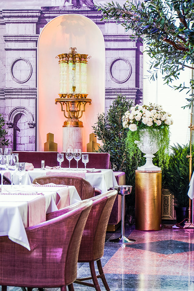 Сталинский ампир с хрустальными люстрами, колоннами, статуями и фонтанами, мрамором и золотом, пусть и уравновешенный садовой мебелью и средиземноморским столовым текстилем, предполагает особенный формат, в случае с Balzi Rossi — это такой идеальный fancy-evening-ресторан, с танцами, шампанским и вечеринками, которые здесь устраивают каждый четверг. Сочетание всех этих обстоятельств легко доводит посетителей, оказавшихся на живом концерте в Balzi Rossi до состояния эйфории — Москва вместе с Кудринской площадью испаряется, и вот вы уже в одном из самых модных мест Ибицы или Сен-Тропе.