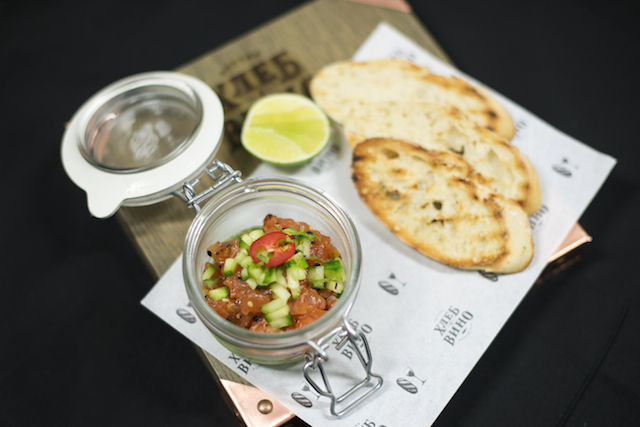 За кухню здесь отвечает выпускница школы Ragout Елена Савчук, а знакомый нам по "Винотеке" в "Цветном" Массимо Наварро — местный сомелье. Закуски все очень простые вроде тартара из лосося, террина из утки и запеченных овощей. Стоит каждая 350 руб. и подается с хлебом, который пекут здесь же. Несомненный хит — хлеб, замешанный на красном вине. Идеальный вариант для тех, кто по нелепому стечению обстоятельств заглянул сюда, будучи за рулем. Кстати, официантов здесь нет: нужно выбрать бутылку вина и заказать еду на баре.