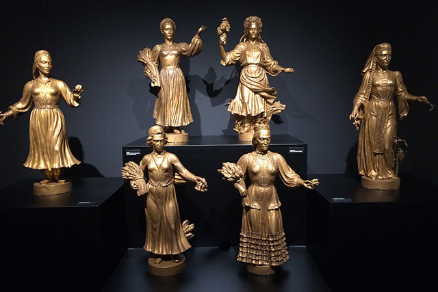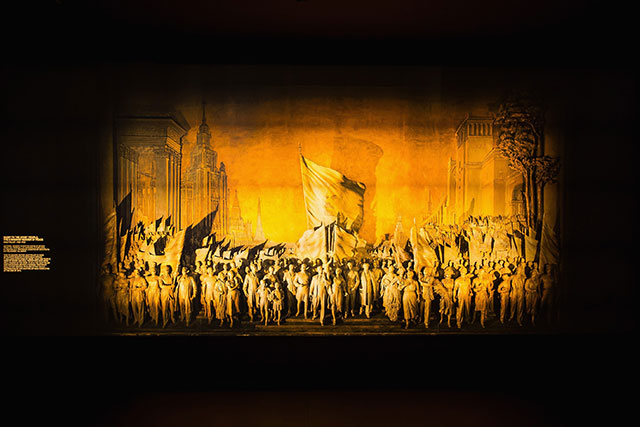 Без визита в национальный павильон не обойтись: во-первых, тема перезагрузки комплекса ВДНХ — из числа нашумевших, во-вторых, нужно же посмотреть, на что был потрачен бюджет. На двух этажах щусевского пряничного домика разместились артефакты из истории ВДНХ, созданные молодыми скульпторами копии элементов декора павильонов, а также круговая видеопроекция хроники будней и праздников выставочного комплекса. Самая интересная часть — планы на будущее — получилась наименее наглядной: предложения по развитию представлены в виде толстых книжек, стоящих на полках последнего зала.