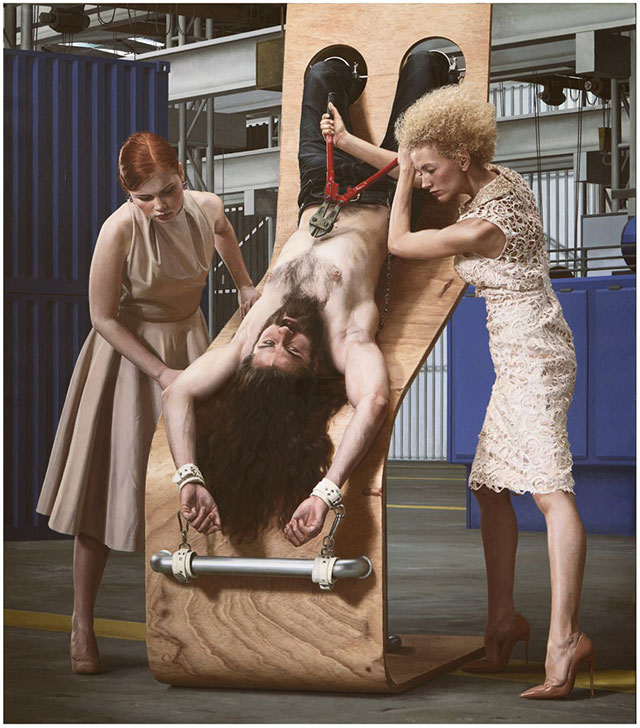 В галерее «Триумф» — продолжение проекта арт-группы AES+F под названием Inverso Mundus, «Перевернутый мир». Как понятно из названия, речь здесь идет о труде исключительно женском. Художники берутся за осмысление тем гендерного и социального неравенства, развивая их в живописи, графике и объектах, складывающихся в целые серии.