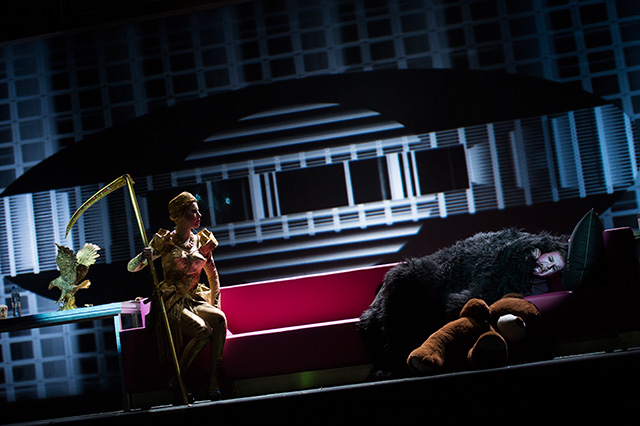 Субботним вечером Театр Наций показывает громкую премьеру — «Женитьбу» Филиппа Григорьяна по хрестоматийной пьесе Гоголя. Традиционная история о сватовстве обрастает эффектными подробностями: заурядные обыватели превращаются в гротескных обитателей мира кислотных фантазий, бродят в скафандрах и ластах, а в роли свахи — и вместе с тем дамы с косой — дебютирует Ксения Собчак. Во вселенной соблазнов и абсурдности происходящего женитьба превращается в неудавшуюся попытку отыскать свое место в жизни.
