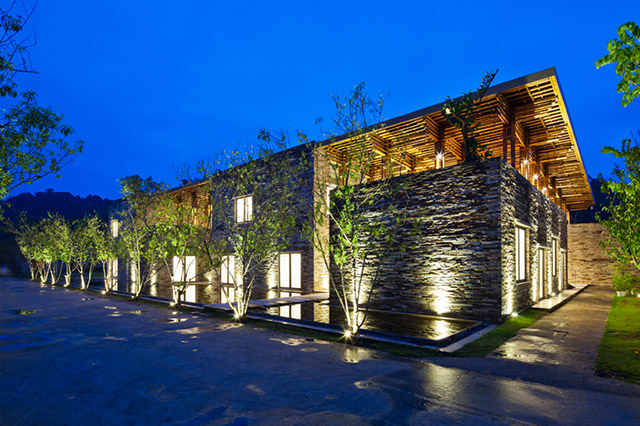 Архитекторы бюро Vo Trong Nghia завершили первую часть гостиничного комплекса, разместившегося в дикой местности на севере Вьетнама. В семи часах езды от Ханоя открылся ресторан Son La, пространство которого соединяет вокруг себя еще восемь сооружений. Поскольку при транспортировке строительных материалов по узким горным дорогам возникли трудности, реализация идеи свелась к использованию местного сырья — камня и бамбука. За счет этого проект получился весьма бюджетным и приспособленным к тропическому климату региона.