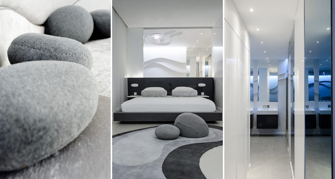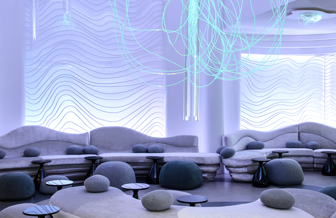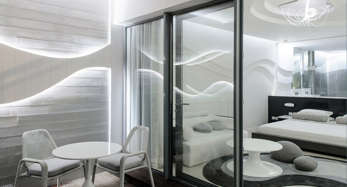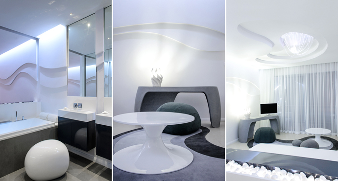Руку к оформлению отеля приложил архитектор Альберт Энджэл из Нью-Йорка. Прожив некоторое время в Конго, Бельгии и Северной Африке, Альберт точно знал, как должен выглядеть отель, проект которого он создавал: обилие белого цвета, предметов округлых форм, натуральные камни — все это перекликается с несколько футуристическим дизайном, воплощенным в подсветке помещений, некоторых предметах мебели и общей атмосфере. Одним словом, все здесь располагает к спокойному, медитативному отдыху души и тела.