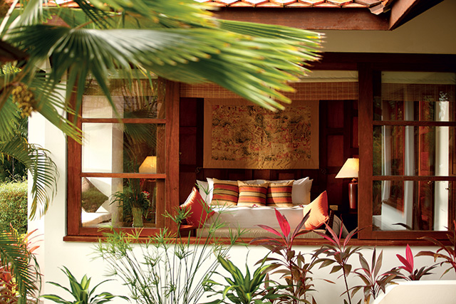 Большая часть здешних вилл — уютнейших белых домиков с коричневыми крышами, идеально вписывающихся в тропический пейзаж, — расположена практически на одном уровне, а не раскидана по высоким холмам, как это часто бывает на Самуи. Это создает свою, очень особенную атмосферу: в Napasai ты все время находишься в непосредственной близости от моря, и не нужно каждый раз организовывать себе трансфер, чтобы искупаться. Местный пляж — один из самых больших на острове, и при этом он многоуровневый. А территория вокруг — подлинный рай, представляющий собой 17 акров тропических садов с кокосовыми пальмами, деревьями кешью, цветущими гибискусами и бугенвиллеями.