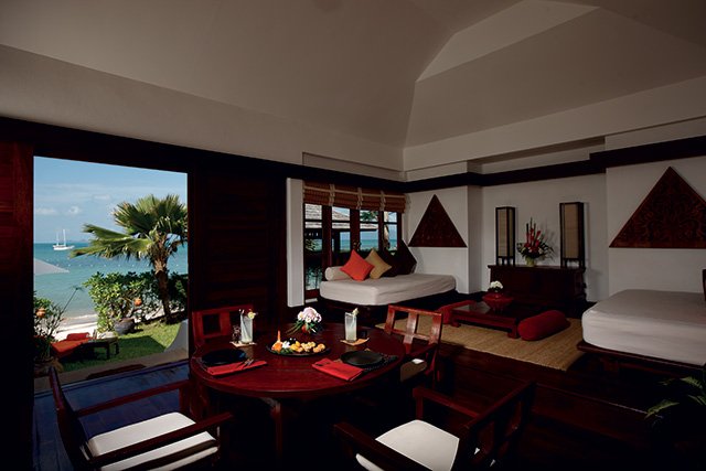 Из-за того что ландшафт в Belmond Napasai практически линейный, возникает ощущение «клубного» пространства. Вы здесь не одинокий отшельник, а член определенного сообщества, ценящего комфорт и хороший сервис. Последний в отеле и правда на высоте: о клиентах заботятся как о родных, причем спектр услуг не имеет четких границ. Например, персонал с радостью угостит вас кокосом, только что сбитым с ближайшей пальмы.