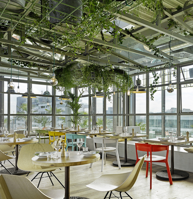 Веселый отель 25hours и бистро Neni расположены — внезапно — в Западном Берлине, который 20 лет назад покинула вся модная тусовка, сдав Кудамм русским туристам и немецким пенсионерам. Сейчас на берлинском Западе вроде как ренессанс. Пока не полномасштабный, но что-то интересное и здесь найдется. В частности, торговый центр Bikini с сумасшедшими, как из 1990-х, нарядами альтернативных немецких дизайнеров. И тот же 25hours, в котором, кроме Neni, есть Monkey Bar на крыше. Бар этот сразу после открытия изрядно оконфузился: в туалетах там были окна в пол, чтобы сидя на толчке можно было любоваться видами. По ошибке подрядчиков вместо зеркальных стекол поставили обычные, и людей на унитазах было видно с улицы. Сейчас, понятно, стекла заменили, туалетами можно смело пользоваться. «Манки-баром» тоже пользоваться можно и нужно. Назвали его так, потому что из окон открывается вид сверху на зоопарк. По вечерам здесь людно, но не тесно, а на закате еще и очень романтично.