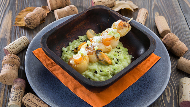 Французская классика вроде картофельного пюре с трюфелем, жареной бараньей лопатки и нежной как только что вылупившийся птенчик ромовой бабы собирает под сводами украшенного мрамором и витражами сталинского дворца публику, скучающую по Куршевелю и Сен-Тропе. Для франкофонов и изучающих языки тут настоящий рай — персонал приехал из Франции и говорит по-французски, по-английски и по-итальянски. Отличную рыбу к столу обеспечивают собственные садки владельцев на Сейшелах, так что рыбные котлеты и кусочек приготовленного целиком рэд снеппера или другой рыбы из южных морей непременно должны оказаться в вашей тарелке.