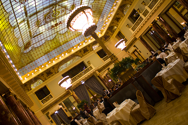 Воскресный обед в историческом зале гостиницы, где когда-то обедал Федор Шаляпин и Анна Павлова, Павел Рябушинский и Савва Морозов, погружает в атмосферу выдающегося гранд-отеля, только что отметившего 110-летний юбилей. Кухня старается над прославленной кулебякой а-ля «Метрополь», печеным ягненком под соусом «Красное вино» с мятой, традиционными щами из тушеной кислой капусты с печеным поросенком и, разумеется, фирменным медовиком. Нельзя пропустить блины с икрой щуки и экскурсию по историческим интерьерам отеля.