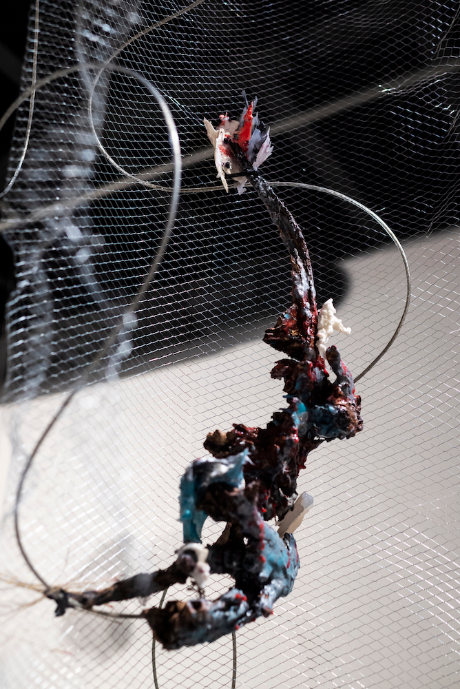 Так я начала делать серии инсталляций, где сочетаю созданные объекты из силикона, пластика, найденных артефактов, частей своих прошлых проектов и даю возможность старым объектам обрести жизнь в синтезе с новыми практиками. Эти инсталляции — не устойчивые мутации, они могут меняться и дальше. В период карантина вышла статья „Learning from the virus“ Б. П. Пресиадо, в которой меня особенно вдохновили следующие слова: „чтобы выжить, надо мутировать, как вирус“, „отойти от мутации навязанной к мутации избранной“, „форма мутации изнутри“».