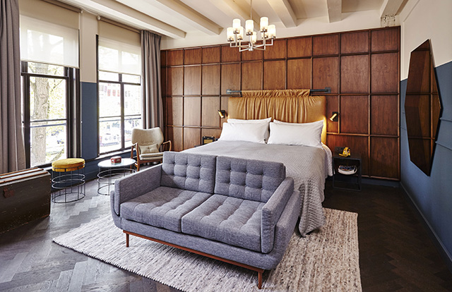 The Hoxton разместился в четырех исторических домах, ранее принадлежавших купцам, на набережной канала Херенграхт и занял для своих 111 номеров все пять этажей. Кстати, лондонская стилистика отеля бросается в глаза неспроста: бренд действительно базируется в столице Великобритании. И амстердамский бутик является его европейской премьерой, к которой в 2016 году присоединится еще и парижская версия The Hoxton.