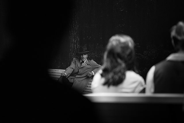 В театре постановку окрестили «спектаклем-кинофильмом»: часть действия «Тополей» перенесена со сцены на экран. Такое решение вместе с Топцовым и Буториным придумала художник спектакля Александра Дашевская, чтобы разгрузить пространство сцены. Основным местом действия оказывается спрятавшаяся в глубине парка аллея, где распевают птицы, а с ног сбивает запах тополей — поздняя весна без них не весна. Режиссером киночасти стал Сергей Осипьян (совсем недавно он, кстати, показал на фестивале «Кинотавр» короткометражку «Лунатики», где в главной роли появляется как раз Юрий Буторин), сумевший уловить приметы ушедшей, но не забытой советской действительности. Герои шагают со сцены на экран и обратно, исчезая в одном пространстве и тут же появляясь в другом. И если в самой постановке заняты только четыре артиста, то в фильме (что называется, в эпизодах) — добрая половина труппы Мастерской. Вот Евгений Цыганов идет с бидоном молока и разговаривает с «ним» и с «ним же», вот в роли выпивающего шахматиста появляется Евгений Каменькович, а в роли деловитой буфетчицы с тяжелым задом — Ксения Кутепова. Эффект черно-белого кино стремились сохранить и в жизни: обесцвеченные предметы, лишенные привычных красок, отвечают именно за это. Порой действие дублируется: тогда, например, столик в кафетерии возникает и тут, и там. Движения артистов точны, но гораздо важнее вложенные в них смыслы.