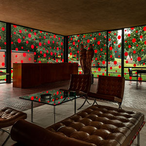 Кусама у большинства любителей искусства ассоциируется с рисунком в горох — знаменитый принт покрывает не только ее инсталляции, но и авторские витрины для Louis Vuitton. Узор возник в жизни художницы вместе с первыми галлюцинациями в возрасте десяти лет (возможно, на почве сурового обращения со стороны деспотичной матери). Занятия искусством стали попыткой освободиться от мучительных видений: «Когда я создаю свои работы, я не думаю ни о чем другом, находясь во власти одержимости, которая захватила мое тело. Мои произведения — плоды моего психического расстройства. Если бы не творчество, я бы давно покончила с собой».