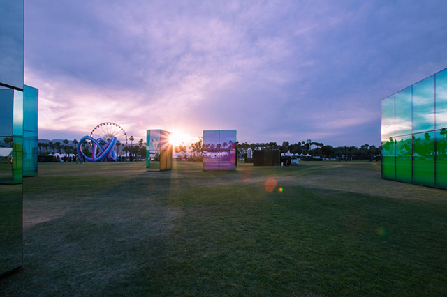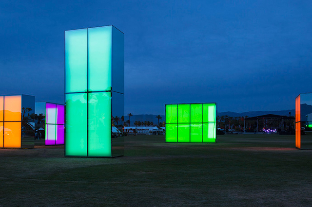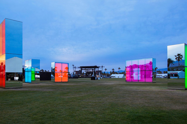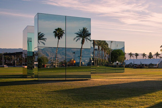 В городе Индио, а точнее, в долине Коачелла, два апрельских уикенда подряд выступали лучшие из лучших: от Disclosure и Muse до Фаррелла Уильямса, Jay-Z и рэпера Pusha T, который, кстати говоря, в мае приедет на московский Bosco Fresh Fest. Их музыка никак не влияла на пять гигантских блоков по проекту Филлипа К. Смита III, но они и без того сверкали в лучах калифорнийского солнца, отражая все вокруг, а в ночи приобретали насыщенный цвет.