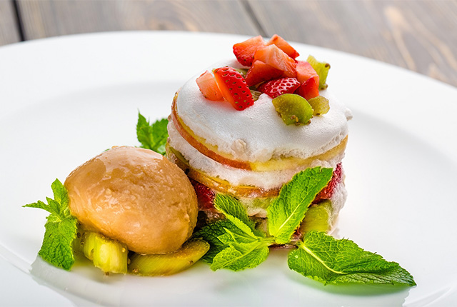 Шеф-повар Николай Бакунов придумал, как разрешить вечный спор калорий, вкуса и пользы. Для приготовления своих сыроедческих десертов он использует только натуральные ингредиенты растительного происхождения: семена льна, кэроб (сладкий порошок из плодов рожкового дерева, заменитель шоколада), семена чиа, сироп топинамбура, сырые какао-бобы, свежие ягоды и фрукты, миндальное и кокосовое молоко. Никакого сахара, рафинированной муки, масла и яиц, а десерты все равно выглядят в высшей степени изящно и аппетитно.