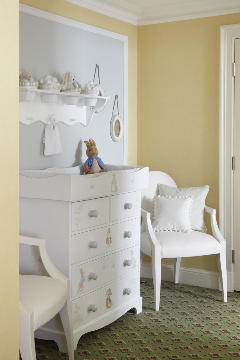Шкафы и кроватки расписаны вручную. На них выгравированы изображения сказочных героев, одним из которых стал персонаж детских книжек Кролик Питер. А уж что до игрушек, так в Suite Dreams собрана целая коллекция плюшевых медвежат и зайцев. Детям от трех лет, несомненно, будет чем себя занять.