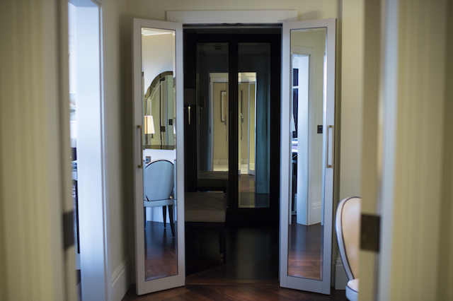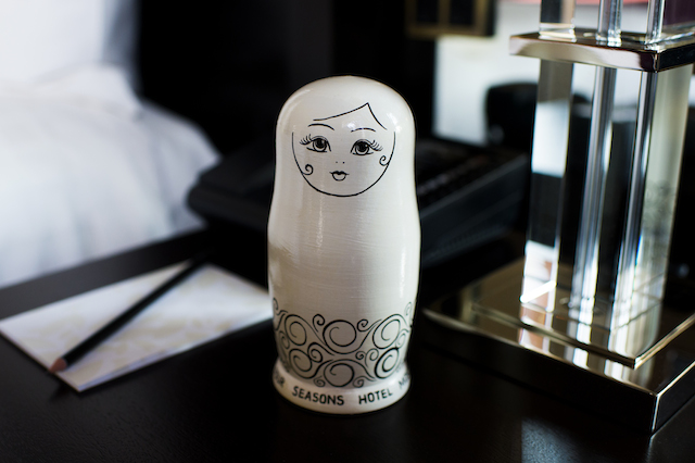 Поднимаемся на девятый этаж нового Four Seasons Hotel — именно здесь расположились двухкомнатные люксы категории Grand Premier Suites. На подходе к номеру в глаза то и дело бросается ненавязчивый "фосизоновский" орнамент: узор в форме листьев встречается на указательных табличках номеров, вентиляционных решетках и коридорных стенах. Это еще раз подтвержает с какой ловкостью маркетологи развивают лояльность клиента, делая свой логотип неотделимой визуальной частью каждого помещения в отеле.