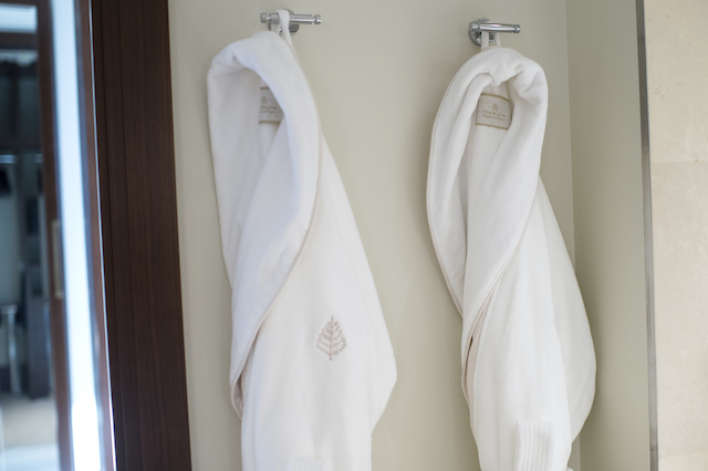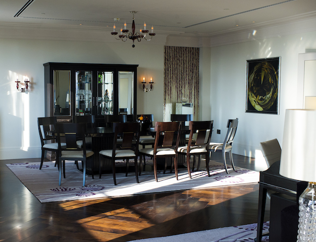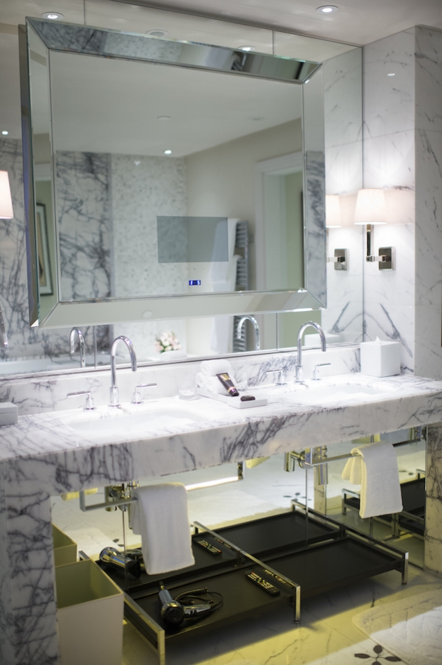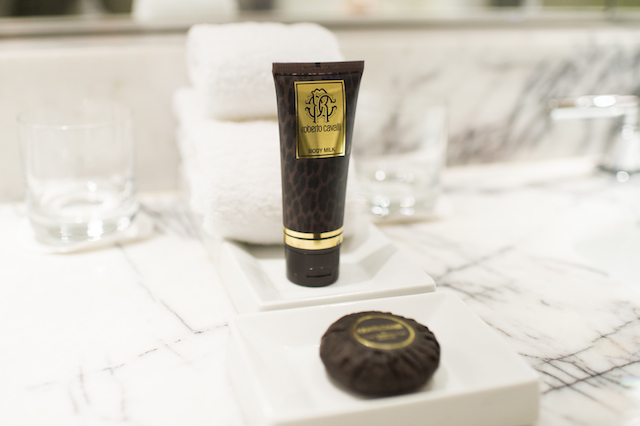 Заходим в номер Grand Premier Suites — на 200 квадратных метрах расположились просторная гостиная, совмещенная со столовой, спальня с зоной просмотра TV, мраморная ванная комната с сауной и банными принадлежностями Roberto Cavalli, гардеробная, кухня с отдельным выходом, куда можно пригласить шеф-повара и устроить приватный ужин.