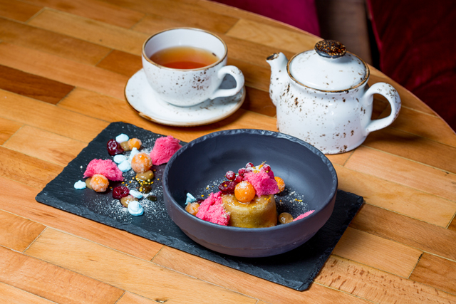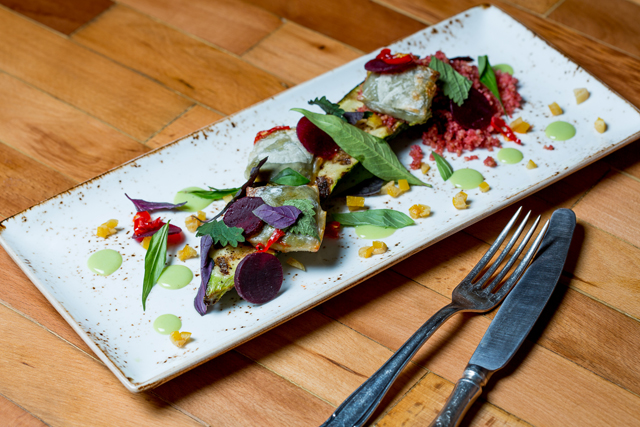 Ранее возглавлявший ресторан «Как есть» шеф Александр Кубриков сочинил нетрадиционный, но вкусный хумус из зеленого гороха (300 руб.), отличную икру из копченых баклажанов (300 руб.; их сначала коптят, потом запекают, крупно рубят и посыпают смесью карри, кешью и фундука), ничем не напоминающую пастрами пастрами из утиной грудки, телятины и языка (490 руб.). В окрошку по-еврейски (с изюминкой) тут кладут одну таки изюминку и берут за нее отдельный рубль (351 руб.), к куриной грудке (470 руб.) на гарнир подают цимес, а из плотного телячьего фарша катают фрикадельки и подают их в томатном соусе (550 руб.). За здешнего гуся с яблоками (690 руб.), томленного 12 часов, можно снести в ломбард последние часы. Ломтик малосольного огурца, пюре из свеклы и моркови, кружок маринованного в свекольном соке лука сопровождает почти все холодные закуски, и это вполне вписывается в мифическую парадигму еврейской бережливости: если есть огурцы и свекла, так почему же их не использовать по полной?