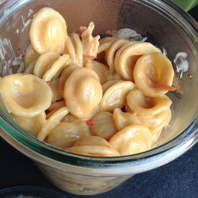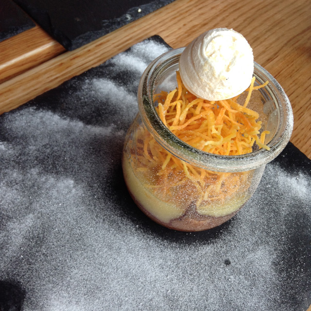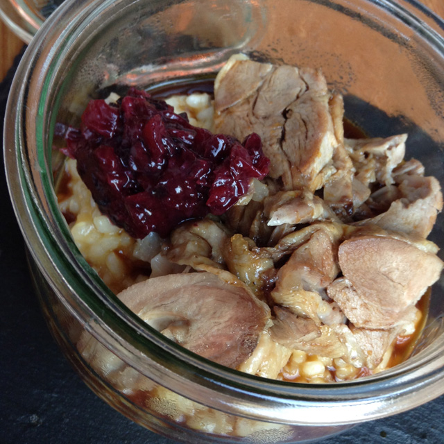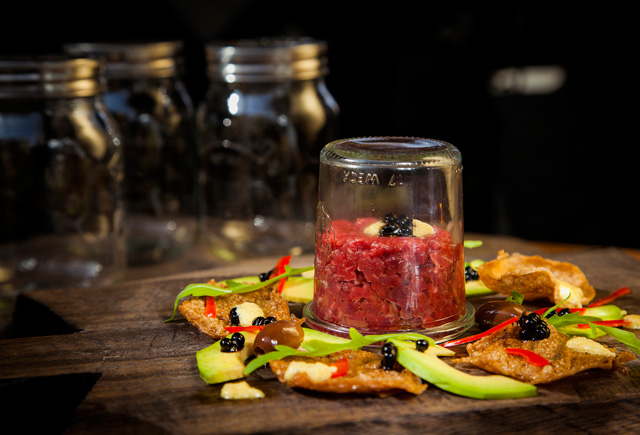Вся еда здесь подается в разного рода банках. Некоторые блюда, например тартар, красиво в банку не положишь, поэтому банками их только накрывают. Придумал это Евгений Васильев, совладелец крупной кейтеринговой компании. Без углубления в определенное гастрономическое направление, по его рецептам в «Банке» готовят беспощадный фьюжн, в котором русские новомодные, классические французские, переосмысленные итальянские, узнаваемые азиатские мотивы теснят друг друга. Хорошо получается не всегда. В ассорти паштетов (террин из кролика с потрошками и можжевельником, риет из утки с зеленым перцем и пате из свинины с фундуком (590 руб.) привлекательно смотрятся сопровождающие их чатни из свеклы с брусникой и тыквы с анисом. Рибай-роллы (510 руб.) подают с кисло-сладким соусом такой страсти, что съесть с ним можно даже ржавые гвозди. Добросовестные орекьетте (400 руб.) с раковыми шейками, креветками и жгучим чили — вариант беспроигрышный по сравнению с разобранными атлетизмом тыквенным ризотто с утиной ножкой (480 руб.) или невыразительным тартаром (450 руб.), украсить который должна, но не может, полимерной текстуры икра из бальзамика. В меню вместе с десертами значится всего 24 позиции. Не слишком большой выбор, чтобы позволять себе неудачно готовить.