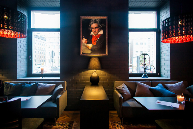 Кафе с кальянами и настольными играми назвали интеллектуальным. В небольшом зале с портретом Бетховена на стене цвета антрацита предлагают блюда по рецептам московских шеф-поваров и пищу для ума — участие в популярных интеллектуальных играх. «В столице давно популярны заведения, где молодежь может поиграть, например в хорошо известную игру «Мафия». Но мое общение с топ-менеджерами показывает, что более взрослая и обеспеченная аудитория также не прочь не только вкусно поесть, но и, например, сразиться командами в «Что? Где? Когда?» или «Угадать за 60 секунд». Так возникла идея соединить два формата в одном заведении: качественную еду и интеллектуальные игры», — рассказывает ресторатор Юлиана Константинова. И если в игры веришь сразу — вместо текстильных сервировочных салфеток здесь используют бумажные, с напечатанными на них кроссвордами, — то в еду не очень.