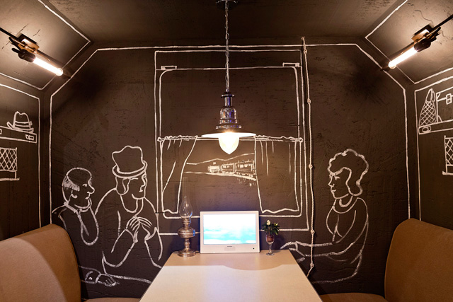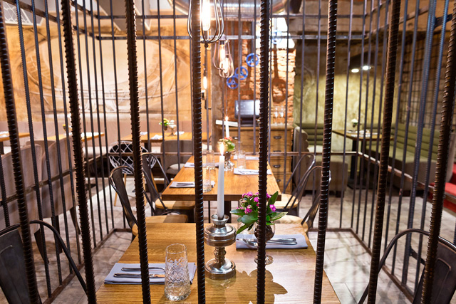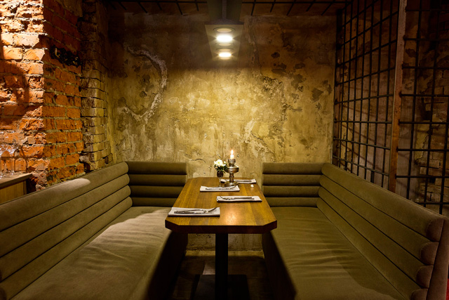 Кафе на Шаболовке производит лоскутное впечатление. В полном соответствии с названием, его интерьер собран из кусочков окружающей нас действительности, в которой итальянский дворик соседствует с больницей, театр — с купе поезда дальнего следования, а Кремль — с тюрьмой. Кстати, самое бронируемое место в ресторане — именно за решеткой. Меню такое же незаурядное: тартар из говядины с фасолевым паштетом подадут на лопате (448 руб.), подкопченную черноморскую барабульку (588 руб.) принесут в жестяной банке. Свекольник с кальмарами и мятой (278 руб.) появится на столе в виде салата, и супом его придется сделать самому гостю, а гребешки (788 руб.) и вовсе придется жарить на раскаленном камне.