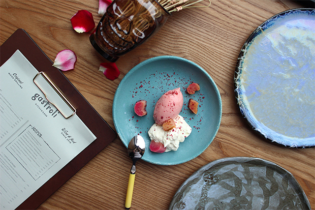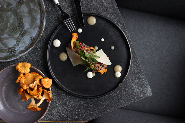 Кажущаяся простота компенсирована безукоризненным качеством продуктов и изящными авторскими штрихами — тартар из утки модифицируется сезонными лисичками (350 руб.), в гаспачо вкрапляются сочные кусочки арбуза и вязкая фета (350 руб.), треска укутывается муссом из мидий (490 руб.), а тыквенный сорбет «братается» с муссом из кокоса (220 руб.).