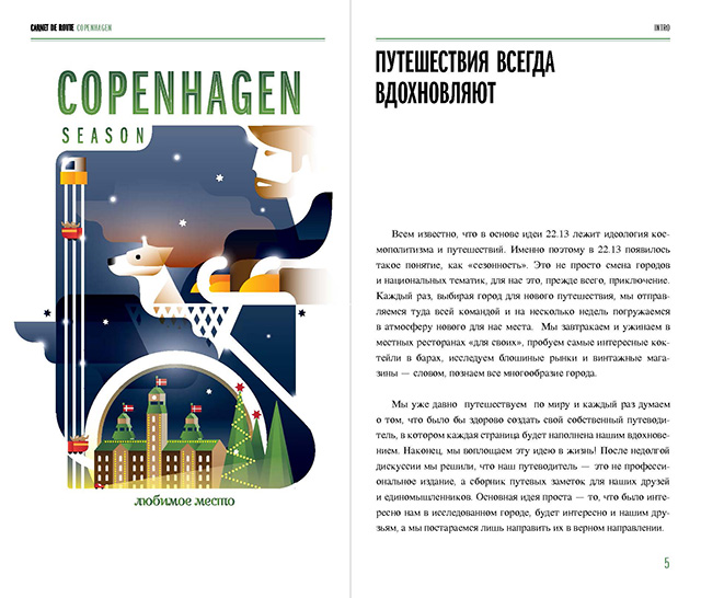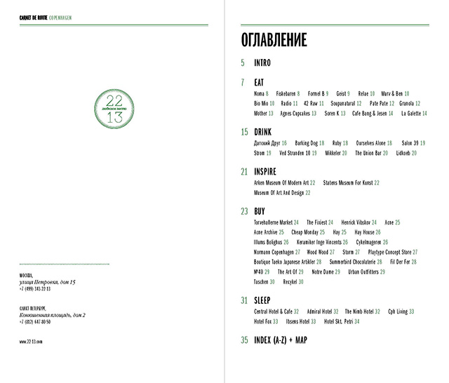 Помимо ярких вкусовых впечатлений гости ресторана получат (совершенно бесплатно, кстати) незаменимую в путешествиях вещь — карманный путеводитель в удобном электронном формате, который, уже по традиции, оповестит их о самых культовых местах для посещения в городе. От того, где остановиться, до того, куда сходить вечером и какие выставки посетить в ближайшее время. Рекомендации команды выглядят примерно так (путеводитель по Копенгагену):