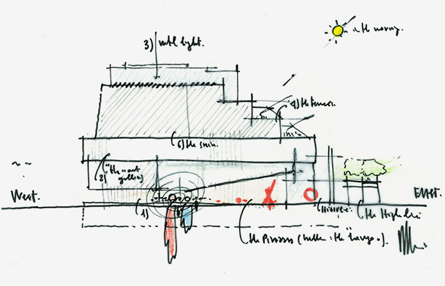 «Мы все любили Уитни в его старом доме на Мэдисон-авеню. Построенное Брейером здание было уникально, — говорит обладатель Притцкеровской премии, архитектор нового Уитни Ренцо Пиано и добавляет: — Работать с таким наследием было настоящим вызовом». При всей своей массивности Уитни словно парит над землей и демонстрирует уважение к окружающему пространству и видам, будто немного «отклоняясь» и оставляя открытым вид на Гудзон. Как объясняет Пиано, «вы заметите, что сложно разглядеть, где кончается здание и начинается улица, — так здание становится частью города. Идея здания, парящего над землей, строится вокруг гостеприимства, приглашения зайти внутрь. Как европеец, я всегда ценил историю, но фантазия и свобода ничуть не менее важны. И работы, которые вы увидите в этом музее, пронизаны свободой. Я надеюсь, что во время посещения музея вы почувствуете: дизайн здания следует за этой свободой, делает ее видимой. С востока Уитни говорит с городом, а с запада — с остальным миром». Ключевой элемент здания — четыре уникальных лифта, вовлекающие посетителей в диалог с искусством с первых шагов в музее. Заходя внутрь, гости оказываются в одной из четырех инсталляций, составляющих последнюю работу Ричарда Артшвагера «Шесть в четырех»: в огромной плетеной корзине, под столом, на ковре перед зеркалом или у неожиданной двери возле окна. Выполнив свою дневную службу, ночью лифты с распахнутыми дверями будут «припаркованы» на первом этаже, представленные на обозрение прохожих через стеклянные стены лобби музея. Четыре каскадные террасы, обращенные на север с захватывающими видами Хай-Лайна и Гудзона, расширяют выставочное пространство музея и также размывают границы между галереями и городом. Террасу на пятом этаже занимает созданная специально для Уитни трехчастная инсталляция Mary Heilmann: Sunset авторства абстракционистки Мэри Хайльман, которая считает, что «в музеи ходят тусоваться». Хаотичные гостеприимные группы радужных стульев, видео о трансформации района и разрушении Западного Хайвея, снятое Хайльман в 1980-х, и две массивные неоново-розовые геометрические формы, карабкающиеся по северному фасаду музея, — это наглядная демонстрация новых возможностей музея и, по словам куратора Донны Де Сальво, «приглашениe для художников воплощать свои самые смелые амбиции в прежде недоступных форматах».