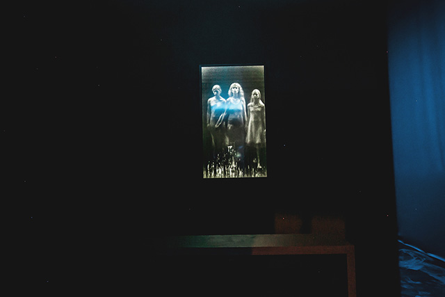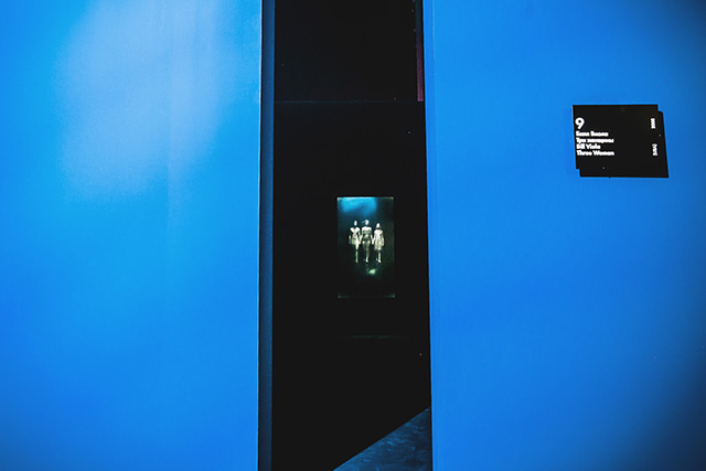 А недалеко от бесконечных световых трансформаций три женщины на протяжении 9 минут и 6 секунд проходят через стену воды: в очередном темном зале показывают работу классика видеоарта Билла Виолы под названием «Три женщины». Обращаясь в своем творчестве к ренессансным мотивам, Виола создает видео, проникнутые философизмом: постмодернистское прочтение вкупе с техническими возможностями наших дней позволяют художнику задуматься о внутреннем мире человека, течении времени и, как следствие, жизни и смерти.