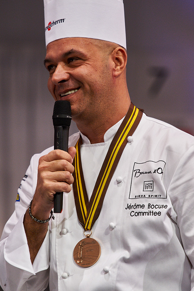 В пятнадцатых лионских играх шефы из 24 стран должны были показать блюда из цесарки свободного выпаса и ручьевой пестрой форели. Все они приготовили еду, которую даже завзятые фудис посчитали бы слишком вычурной и чрезмерно рафинированной. Она должна поразить зрителей внешним видом, а жюри — еще и вкусом. Замысловатые композиции на стеклянных и отполированных до блеска плато затем сервировались в не менее ошеломительно выглядящие визионерские сочинения. Почетный председатель жюри и один из лучших шефов США Грант Акац так сформулировал свои впечатления: "Что сказать, у нас было очень много еды... Ну а если серьезно, было так много изящества и страсти у каждой команды, что выбирать лучших из них было действительно сложно".