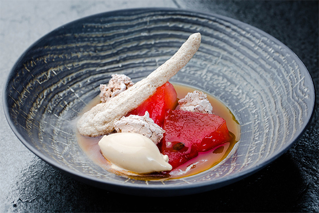 Чтобы по достоинству оценить стиль Кетгласа, стоит заказать его дегустационный сет (2 990 руб.), который меняется каждый месяц. Кетглас считает, что это лучшая возможность показать способности команды. В своем майорском ресторане Adrian Quetglas он и вовсе предлагает гостям только сеты, обеденный и на ужин, без возможности выбора а ля карт. Сет в Grand Cru выглядит выдержанным манифестом кухни Кетгласа, вобравшей в себя годы его жизни и работы на Майорке, в Лондоне, Париже и Москве. Тартар из маринованного в мирине тунца с мороженым «Васаби» обладает легкой нотой горечи. Ее поддерживает брокколи, контрастирующая с печеным вкусом ложного трюфеля (на самом деле это зобная железа в панировке) в крем-супе из белых грибов с черными лисичками. Приготовленный в хоспере лосось снабжен сливочно-сладким соусом, и эту сладость продолжает десертного свойства грушевый чатни в кус-кусе с лопаткой ягненка. Почти на нет она сходит в собственно десерте. Ледяной арбуз с мороженым из ройбуша и шоколадным снегом обладает легким и изящным вкусом, точно воплощающим мимолетность лета.