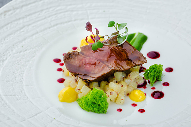 В Grand Gourmet версии можно попробовать андалузский гаспачо с маринованным гребешком (590 руб.), открытый равиолло с морепродуктами (1 350 руб.), язычки ягненка со сладким картофелем и цветной капусты (1 350 руб.), а также мороженое «Бальзамик» с брауни и супом из черешни (450 руб.). Блюда для Grand Grill готовят в хоспере — испанской печи, симбиозе мангала и русской дровяной печки. Среди них антрекот на гриле с солью Мерло (2 150 руб.), язык молодого бычка под розмариновым соусом (1 190 руб.), купаты из кролика с испанскими специями (850 руб.), дорада а-ля прованс (1 100 руб.).