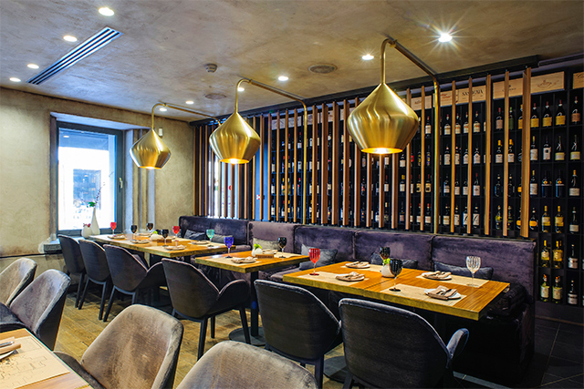 Несколько месяцев реконструкции под присмотром дизайнера Натали Белоноговой превратили Grand Cru в узнаваемо неузнаваемое пространство. Место прежних сверкавших бусинами занавесок заняли строгие панели из дерева, над столами в основном зале нависли латунными бокалами светильники, а стены нового зала украсили композиции из дерева и зеркал. Серый перламутр бетонных стен и потолка прекрасно подчеркивает основную мысль: кухня Адриана Кетгласа, восьмой год руководящего рестораном, — настоящая жемчужина.