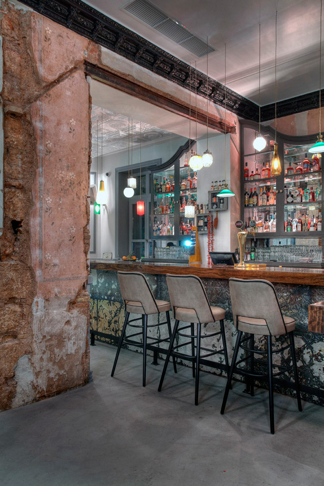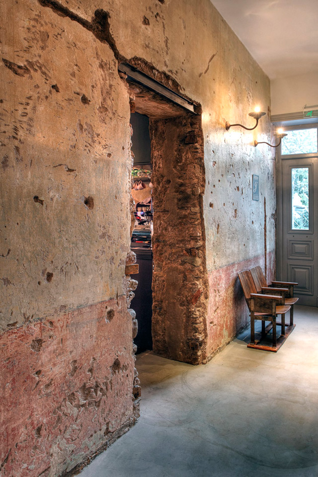 Главная задумка дизайнеров — подчеркнуть детали старины, сохранившиеся в доме спустя 120 лет его эксплуатации. Стены особняка с фресками прошлого столетия, по проекту Константины Панайоту, были восстановлены с использованием техник "старения" краски, при этом лестница на второй этаж расписана сюжетами комиксов, которые отлично вписаны в общую концепцию ресторана и оттеняют исторические "потертости" здания. Стилистический контраст в оформлении выгодно подчеркивают многочисленные световые приборы руки немецкого светодизайнера Инго Маурера.