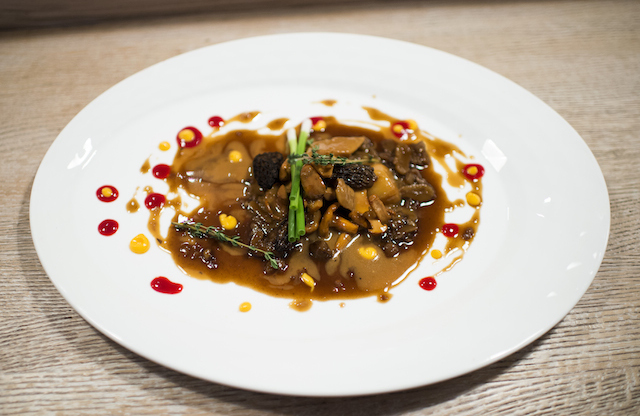 Соте из белых грибов и сморчков в каштановом соусе и с трюфельным маслом