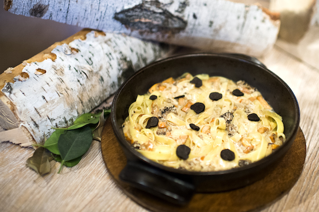 Паста домашняя из дровяной печи с трюфелем и разными грибами