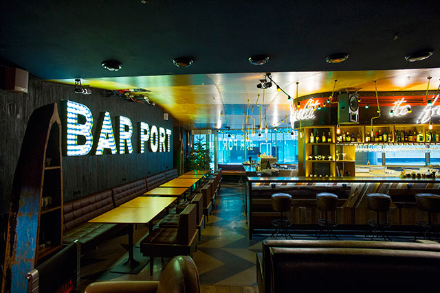 Бар Port открылся на второй линии здания "Легенды Цветного". Стремительный форштевень барной стойки рассекает заведение надвое. У окон, выходящих во внутренний двор, где Дувинг собирается время от времени устраивать выставки объектов современного искусства, расположены низкие диванчики и крохотные столики с ручками. Их можно переносить с места на место, мигрируя от одной компании к другой со всем своим. В глубине зала — мягкие диваны и столы с креслами. Стены инкрустированы разнокалиберными цветными досками-обломками кораблекрушений.