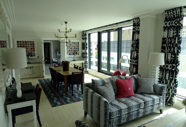 Но, определенно, наибольший вклад в облик (да и образ) отеля внесла дизайнер сети Firmdale Кит Кемп, которая стала автором интерьеров Ham Yard Hotel. В оформлении сьютов Кемп сделала упор на британскую классику текстиля, яркие сочетания цветов и миксы принтов. Особой гордостью дизайнера стали помещения роскошной гостиной с камином и большой библиотеки.