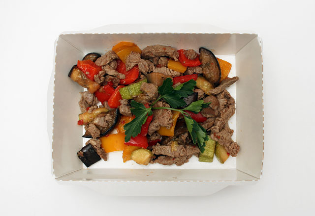 По опыту знаю, что, например, мужчине при наращивании массы очень сложно сбалансировать высококалорийный рацион. Но у меня другие цели. Поэтому я выбрала меню Gold на 1500 ккал в день. В шесть утра в дверь позвонил курьер с фирменной термосумкой. На этот раз мне предстояло есть кашу из булгура с фруктами, кролика в имбирном соусе с паровыми овощами, спагетти с курицей, салат из груши и свеклы и нечто под названием маланзана (которое оказалось сооружением из кабачков, баклажанов, помидоров и сыра).
