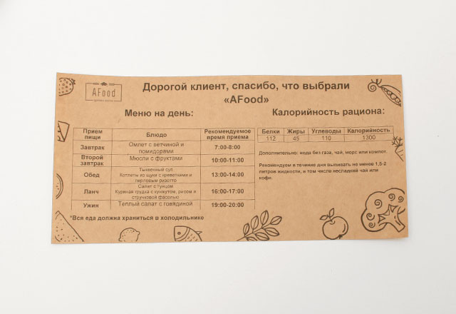 В пакете с едой я также нашла буклет с адекватными рекомендациями по самостоятельному составлению меню. В целом сервис мне понравился.