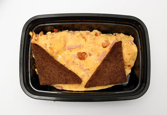 Пакет мне доставили накануне вечером прямо на работу. Оказалось, что 1300 ккал — это очень много еды! На завтрак мне предложили омлет с ветчиной и хлебом; второй завтрак состоял из мюсли с фруктами. На обед — тыквенный суп, котлеты из щуки с креветками и перлотто. Полдником стали салат с тунцом и куриная грудка с кунжутом, рисом и стручковой фасолью. На ужин оставался теплый салат с говядиной. Получилось пять полноценных приемов пищи.