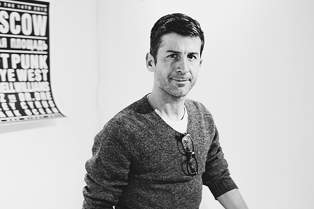За пару часов до preview выставки "Dream Concerts" мы встретились с Андре прямо на площадке — вместе с ассистентами он развешивал постеры на -1 этаже Универмага "Цветной". Все вокруг ускоренно готовились к мероприятию Le Baron Paris Style, проходящему при поддержке Martell, раскладывали журналы Garage Russia — этим вечером увидел свет второй его номер. А мы с Андре уселись прямо на картонные коробки, полные номеров L'Officiel Homme, и успели немного поболтать.